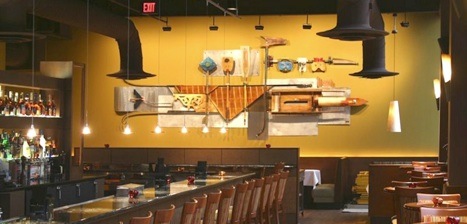 In addition to his work in fine carpentry Michael has an active career creating commission sculptures and functional artworks throughout the northeast. Still focusing on using materials that are being re-used and and re-imagined (often from the dumpsters of the latest restoration project) he has worked both by himself and in collaboration with other artists. to make remarkable pieces and environments for homes, retail stores, galleries, and corporate centers through-out the northeast. From a 27' long sculpture hanging in the AAA headquarters in Wilmington DE (done in collaboration with Scot Kaylor) to plexiglass light sculptures in the offices of the Brandywine Realty Trust at the Cira Center in Philadelphia, Michael has carved a distinctive niche of heartful and imaginative pieces that also are appropriate for a wide viewing audience. You can peer at some sampling of his work at his gallery page at Bodemotion gallery or view his full complicated website at I-Zarts.com